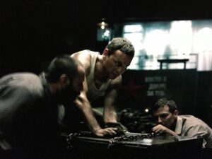 À plusieurs reprises, l’intensité s’arrête à l’écoute du chant du pigeon, il rappelle qu’il est bien vivant, c’est comme une reconnaissance envers ces hommes, si rudes, le pigeon est d’une douceur incroyable.